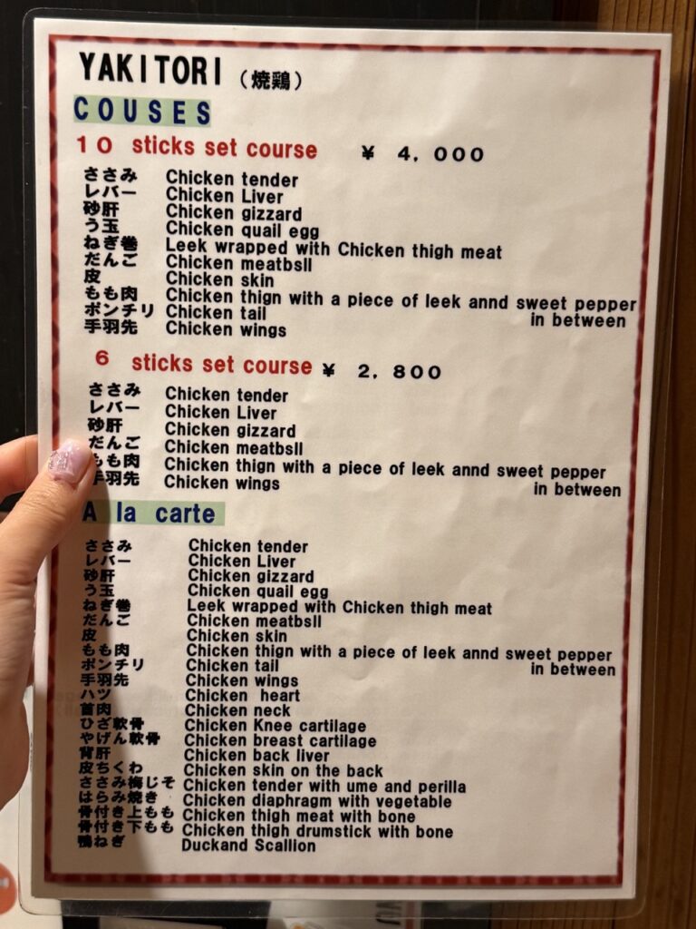 메뉴 하나하나가 정성스럽게 구워져 나오긴 했는데, 솔직히 야키토리가 여기 아니면 못 먹는다는 느낌까지는 아니다. 그래도 일본인들 사이에서 술잔 기울이며 닭꼬치 먹는 경험 자체는 재밌었다.