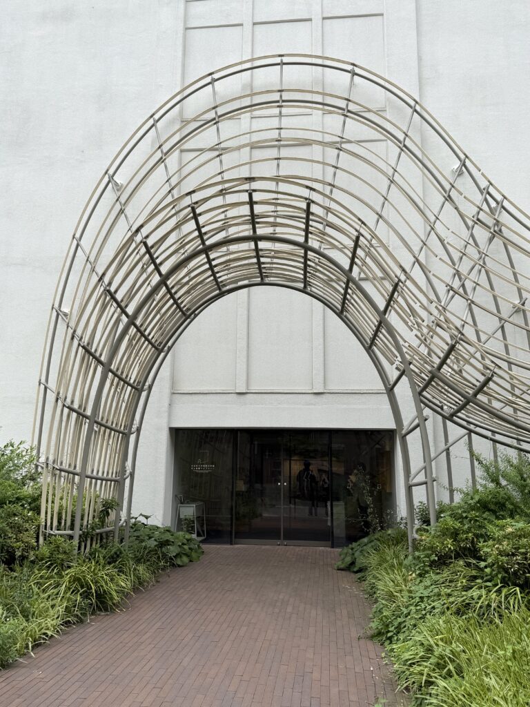 무라카미하루키 도서관은 학교 건물들 사이에서 독특한 입구 구조를 가지고 있어서 눈에 띄게 보인다.